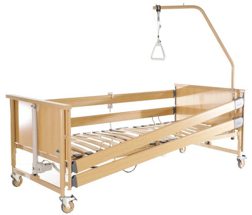 - Elektrické polohovacie lôžka – polohovanie zaisťuje motor, je teda potrebné posteľ umiestniť do blízkosti elektrickej zásuvky. Polohovacia posteľ s elektrickým ovládaním je pre pacienta pohodlnejšia, pretože si sám nastaví najvhodnejšiu polohu.