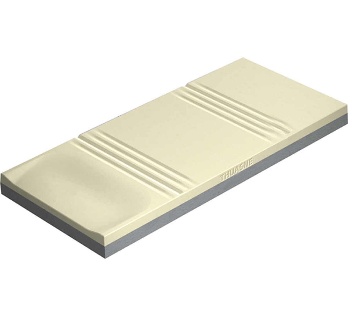 - 1. 7 cm penovej vysokoelastickej podložky s tvarovou pamäťou - ideálne rozdeľuje tlak, tvorí vrchnú časť na ktorej pacient leží.