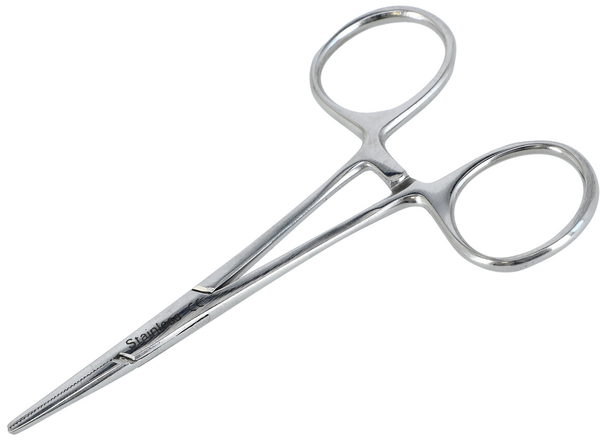 Rovná svorka z nehrdzavejúcej ocele na použitie pri operačných výkonoch.