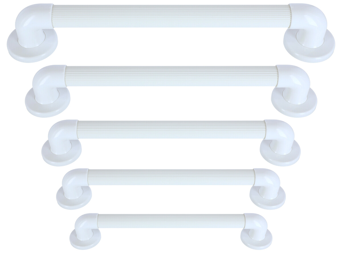 Plastové protišmykové madlo slúži ako oporná pomôcka pri vstávaní, sede a stoji v kúpeľni a na WC. Madlá sú k dispozícii v 5 rôznych dĺžkach a môžu byť namontované v akejkoľvek polohe.