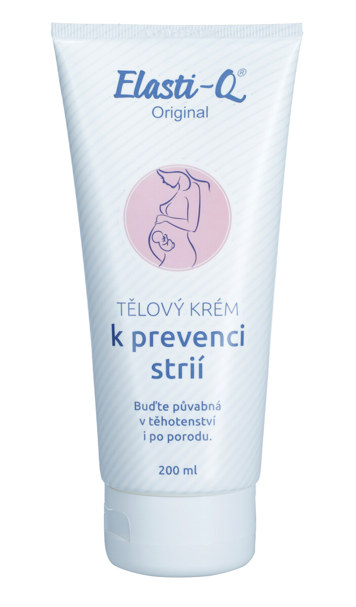 Originál telový krém Elasti-Q je kvalitným prípravkom, ktorý sa používa na prevenciu proti striám. Obsahuje 6 účinných zložiek, a to kyselinu hyalurónovú, elastín, vitamín E, D-panthenol, pupkovník a kozinec.
