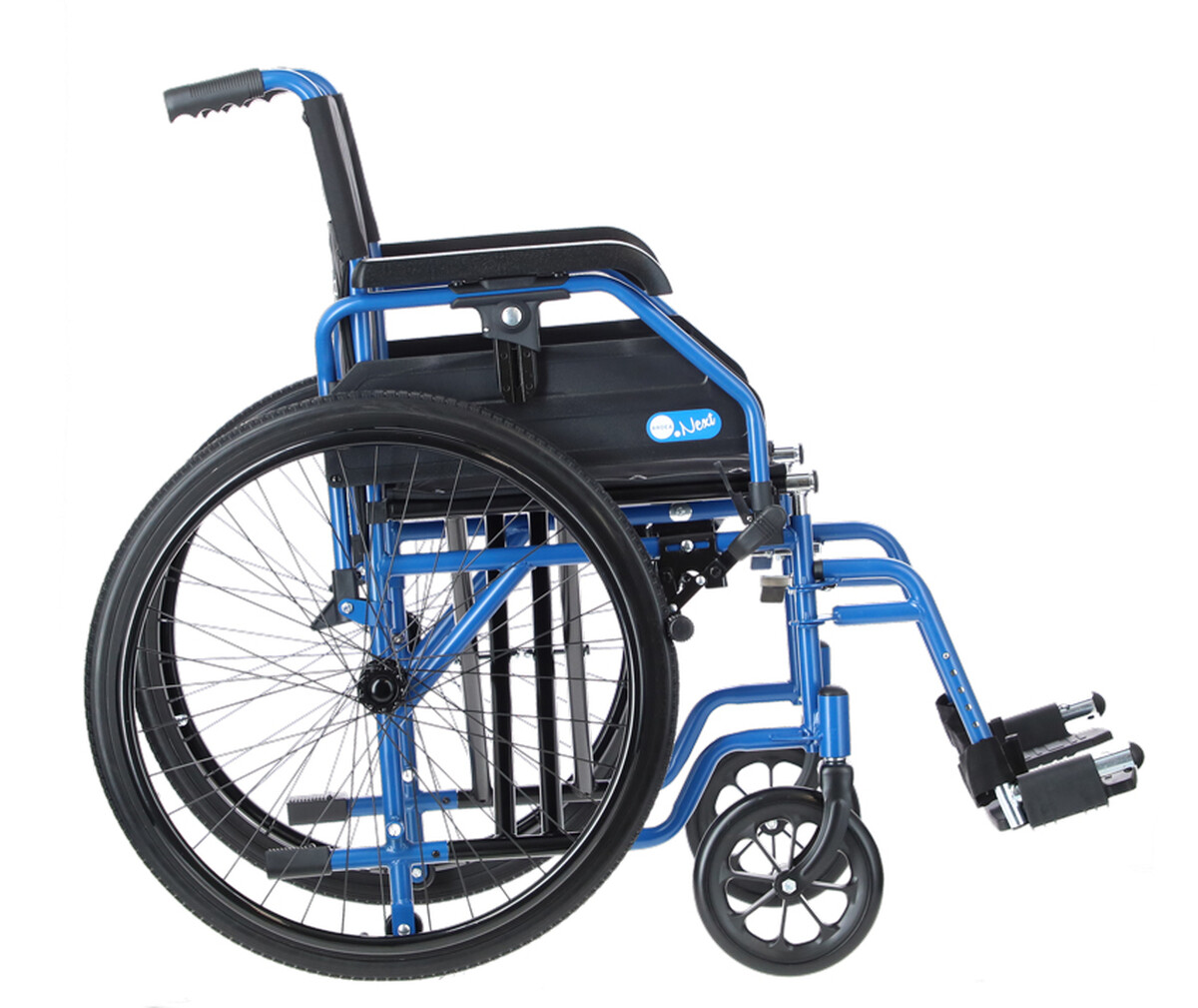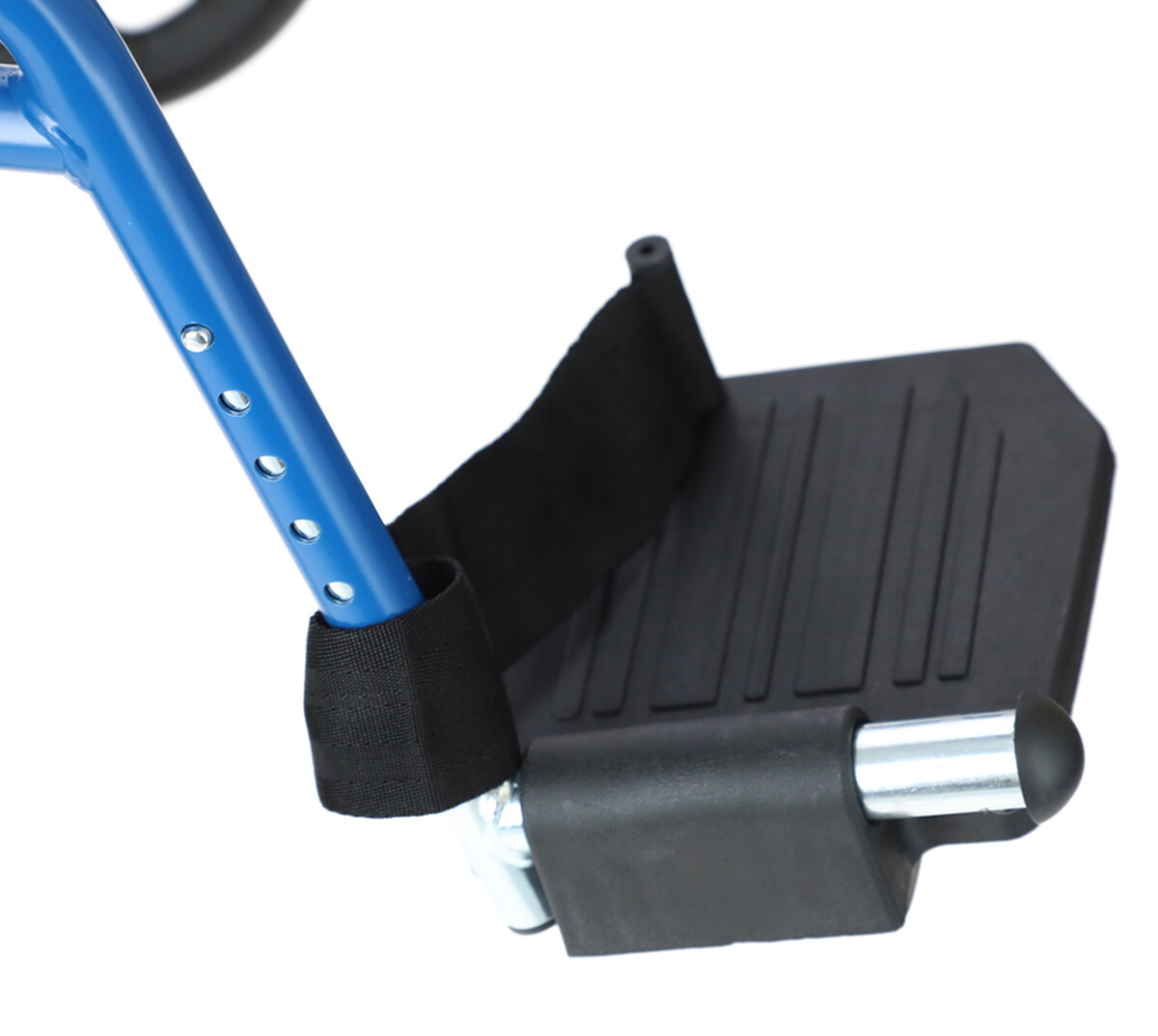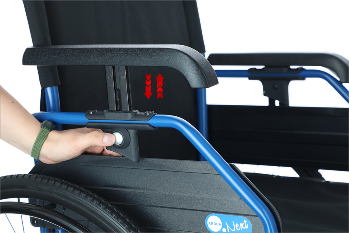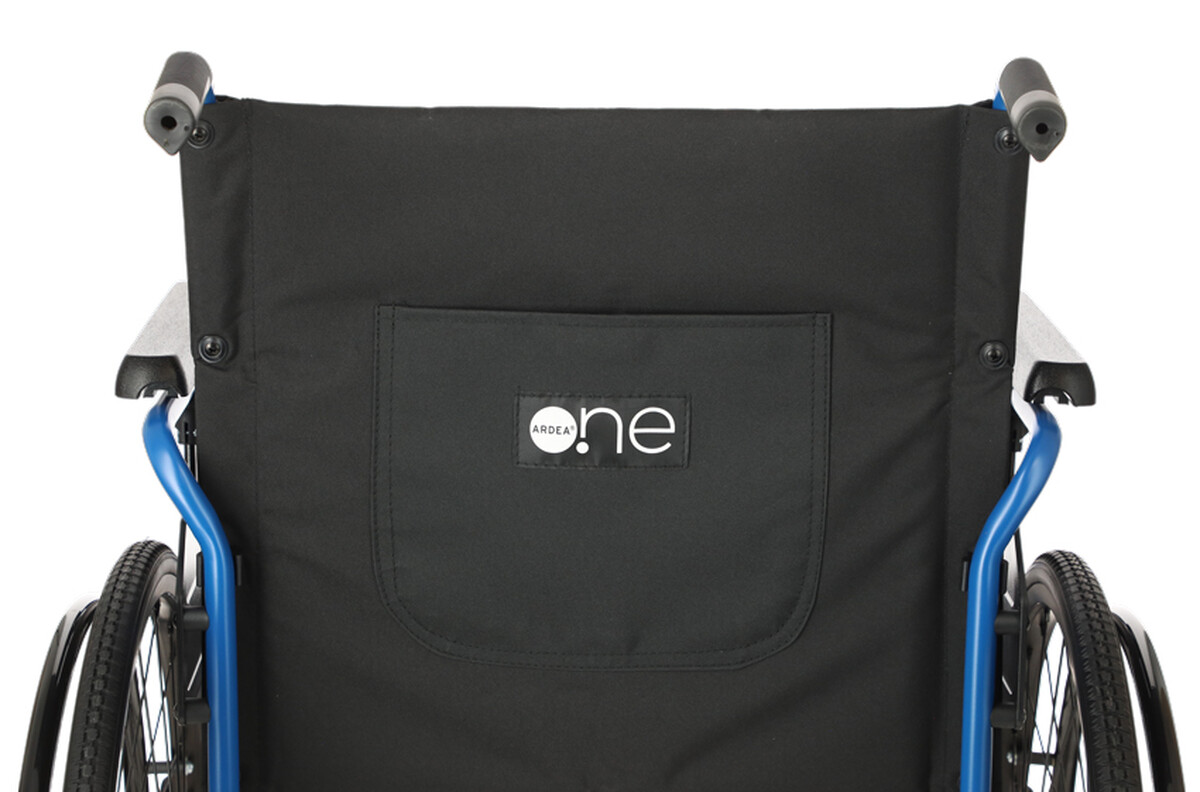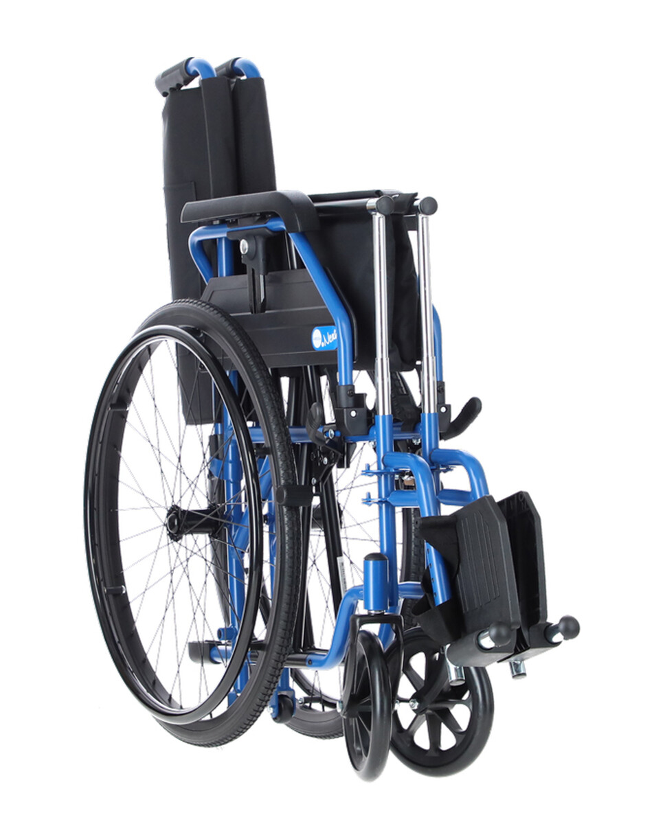Rám je vyrobený z pevnej lakovanej ocele tmavomodrej farby, sedadlo a opierka chrbta sú čalúnené a vyrobené z ľahko umývateľného nylonu. V zadnej časti vozíka sa nachádza vrecko na odkladanie dokumentov alebo iných vecí. Lakťové opierkysklápacie a tiež výškovo nastaviteľné. Uvoľňujú sa pomocou páčky s pružinkou. To umožňuje osobe jednoduchšie nasadnutie alebo vysadnutie z vozíka.