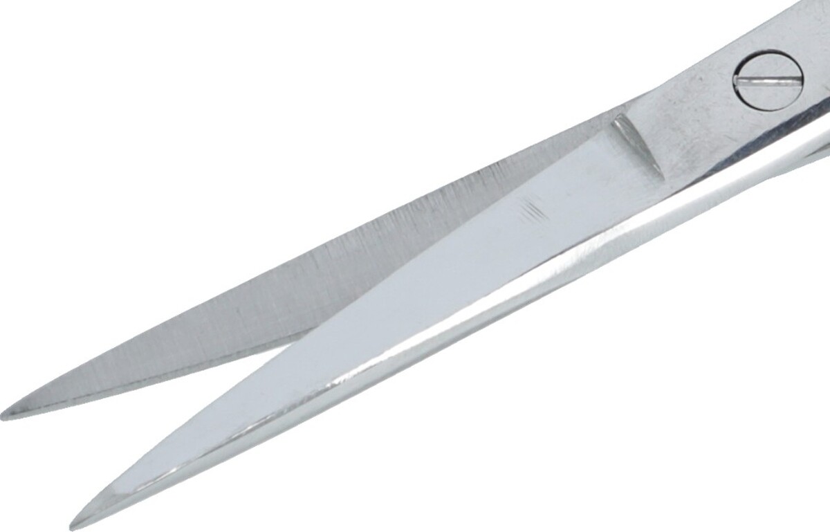 Nožnice rovné, hrotnaté, dlhé 14 cm z nehrdzavejúcej ocele určené na strihanie.