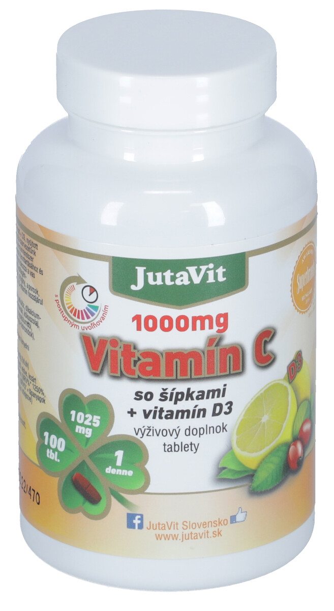 JutaVit Vitamín C so šípkami + vitamín D3, 100 tabliet