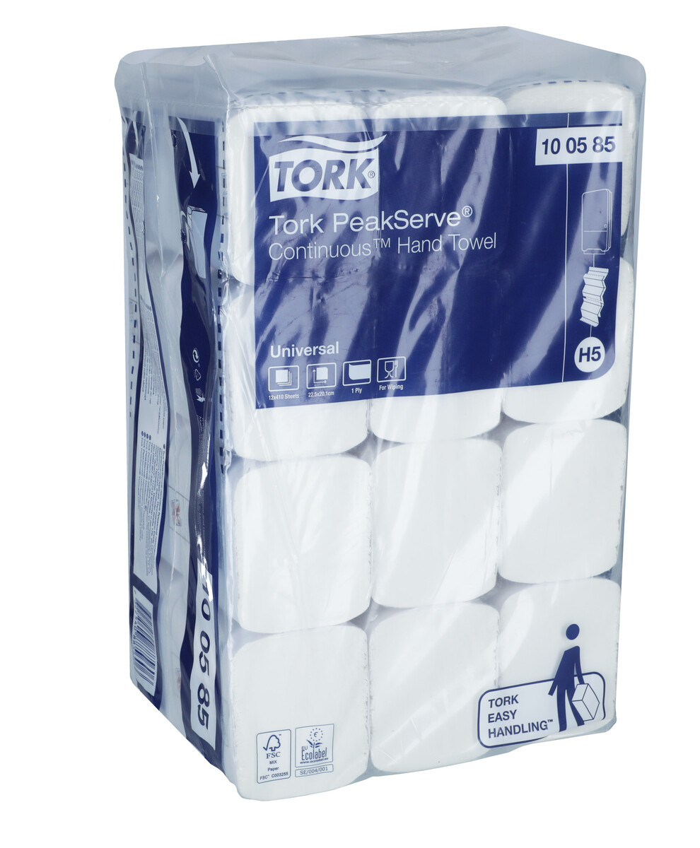 Systém Tork PeakServe bol navrhnutý špeciálne pre frekventované toalety a umyvárne, kde je potrebné udržať plynulosť návštevníkov. Nadväzujúce papierové utierky Tork PeakServe zaistia vďaka dávkovaniu v útržkoch šetrnú spotrebu a lepšiu úroveň hygieny.