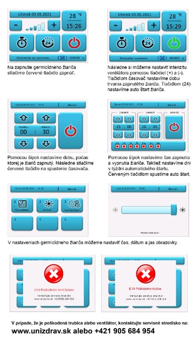 Germicídny žiarič UNIZDRAV s displejom uzavretý mobilný – biele vyhotovenie