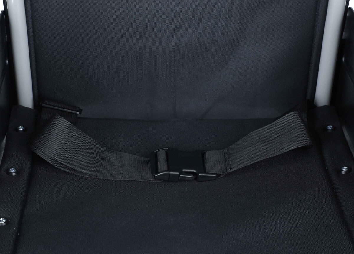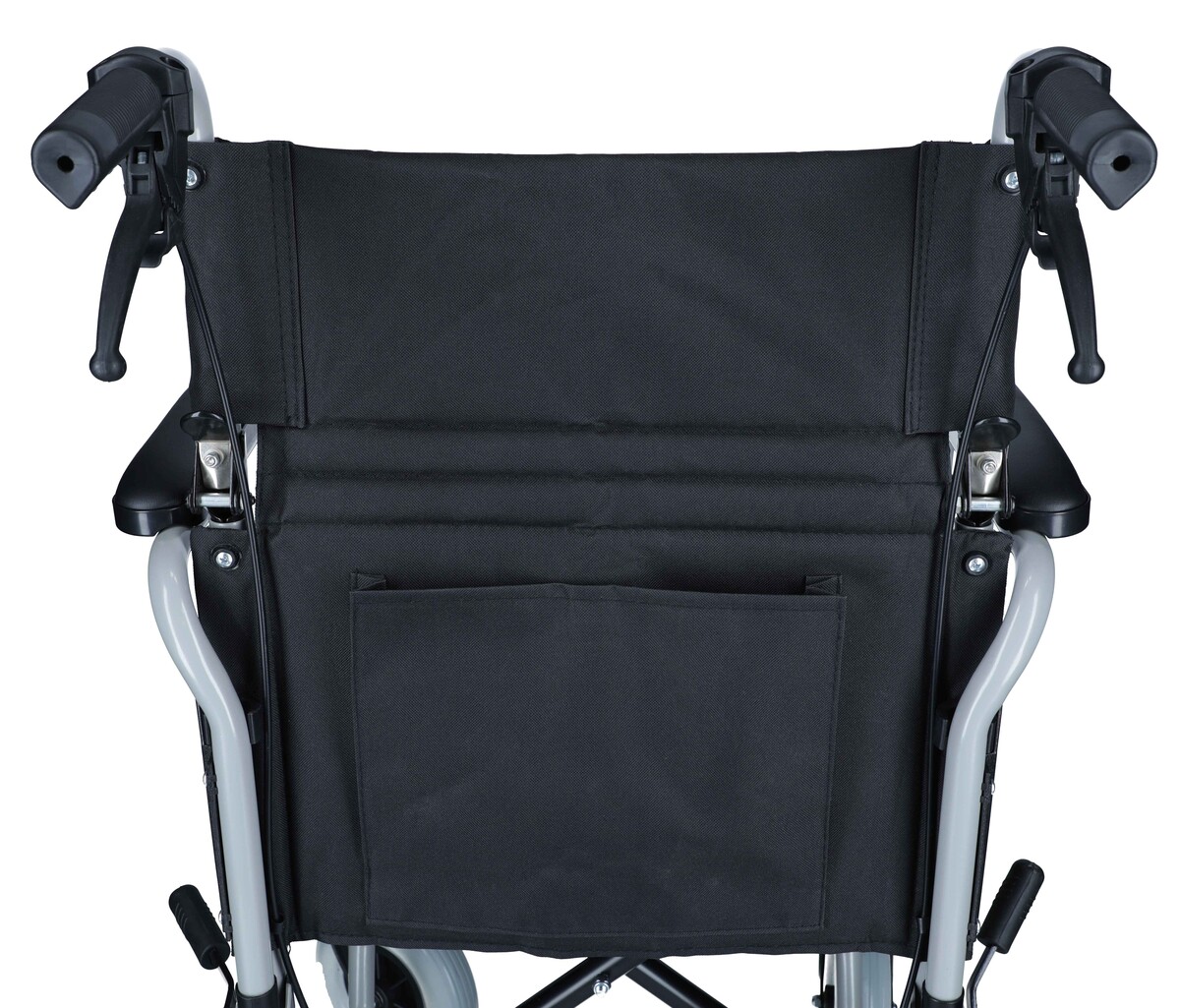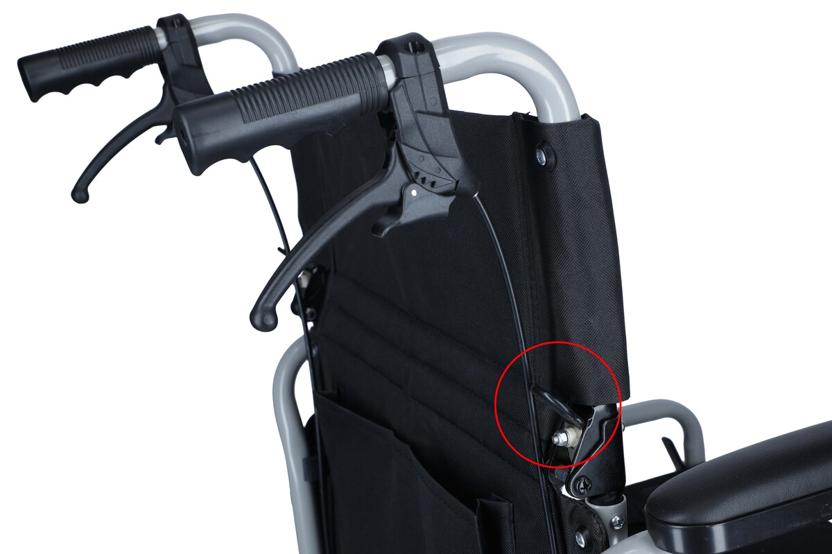 Vozík je vybavený chrbtovou opierkou, ktorá sa dá sklopiť pomocou príslušných poistiek na zadnej strane opierky.