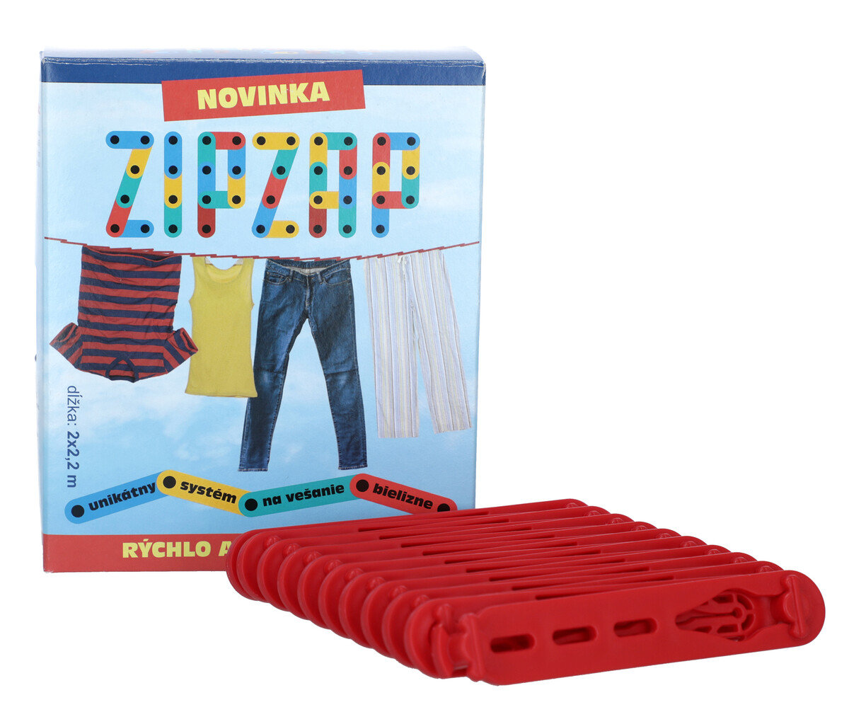 ZIPZAP je revolučný plastový systém na sušenie bielizne, vďaka ktorému je jej vešanie rýchle a jednoduché. Ide o praktickú pomôcku vhodnú nielen pre osoby so zdravotným znevýhodnením. Pri používaní navyše nie je potrebné používať štipce, ktoré zanechávajú na oblečení nevzhľadné odtlačky.
