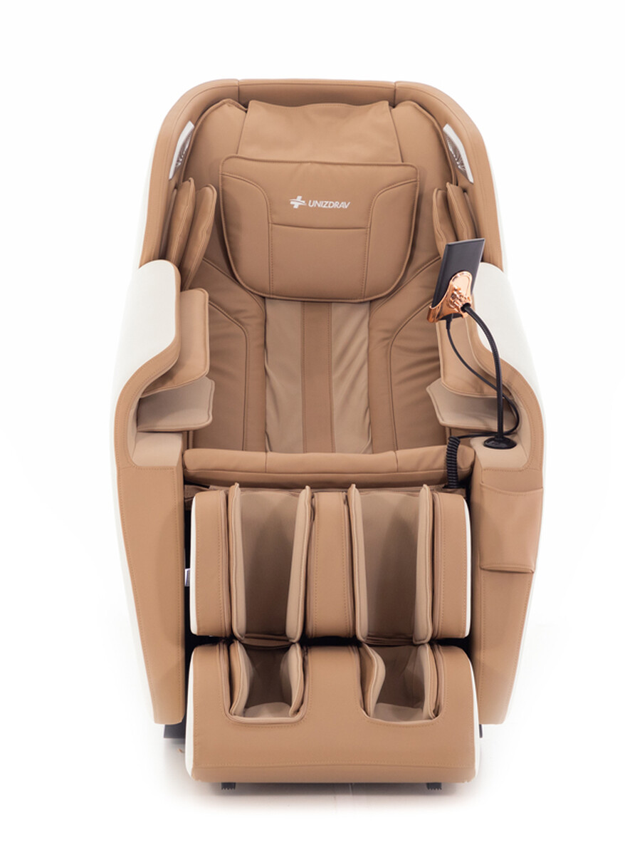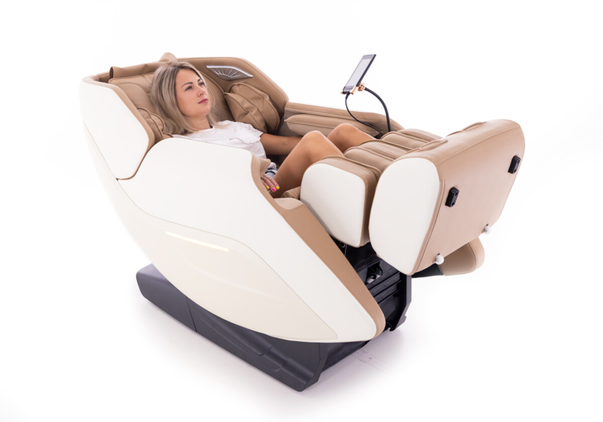 Masážne kreslo v nápaditom dizajne nabité najnovšími smart technológiami s množstvom masážnych programov a techník. Inštalácia v cene.