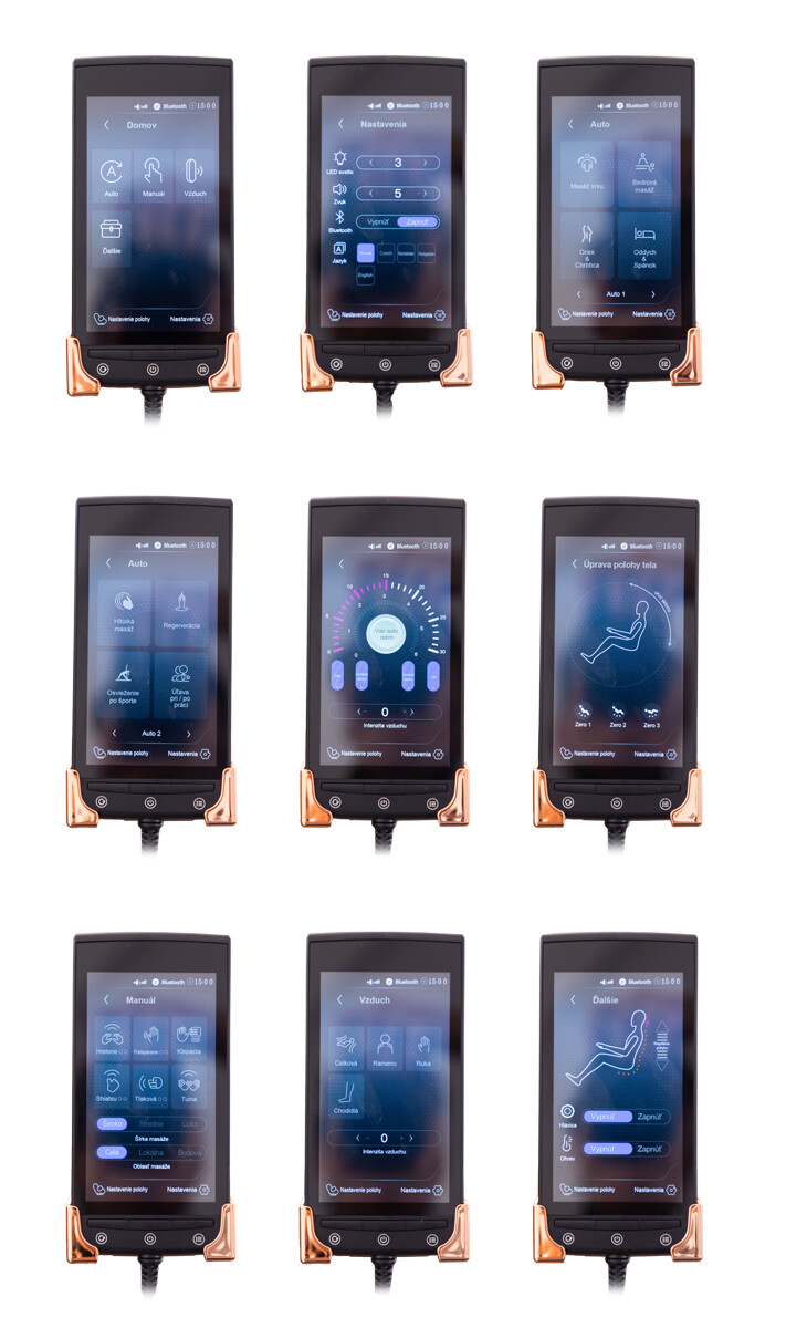 Pri každom automatickom režime je možné zvoliť čas trvania masáže v rozpätí 5 až 30 minút a aktivovať, resp. deaktivovať vyhrievanie chrbta. Doplnkovou funkciou je voľba intenzity masáže vzduchovými vankúšikmi až v 6 úrovniach.