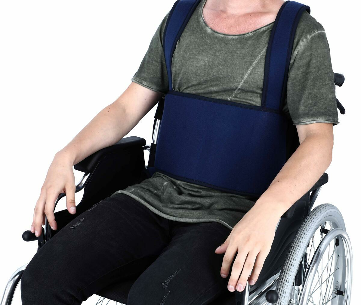 Široké stabilizujúce popruhy, ktoré sa upevňujú vzadu pomocou suchého zipsu, ponúkajú jednoduché a efektívne upevnenie pacienta v invalidnom vozíku. Pomáhajú udržiavať správne držanie tela počas sedenia a bránia skĺznutiu z vozíka. Popruhy sú široké 21 cm. Dĺžka popruhov je nastaviteľná od 130 - 150 cm.