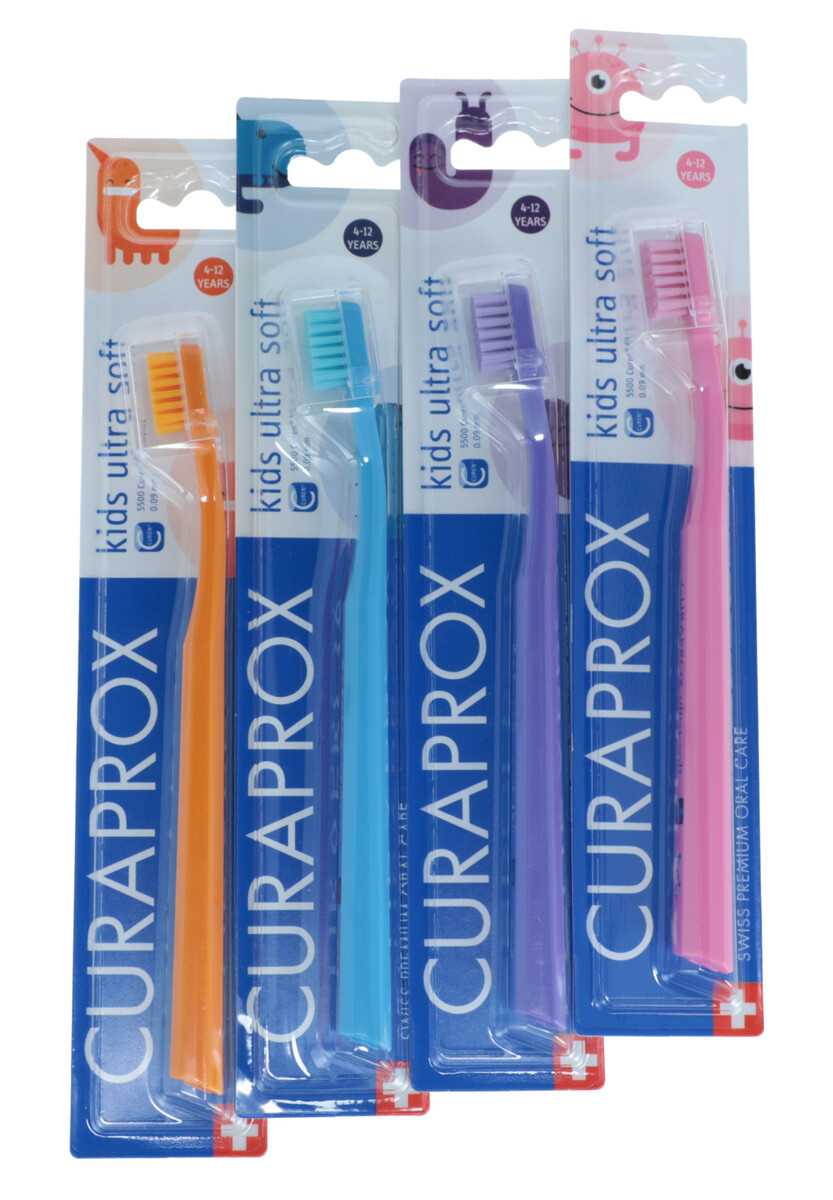 Detská zubná kefka CURAPROX Kids pre deti od 4 do 12 rokov je navrhnutá podľa obľúbeného modelu pre dospelých CS 5460.
