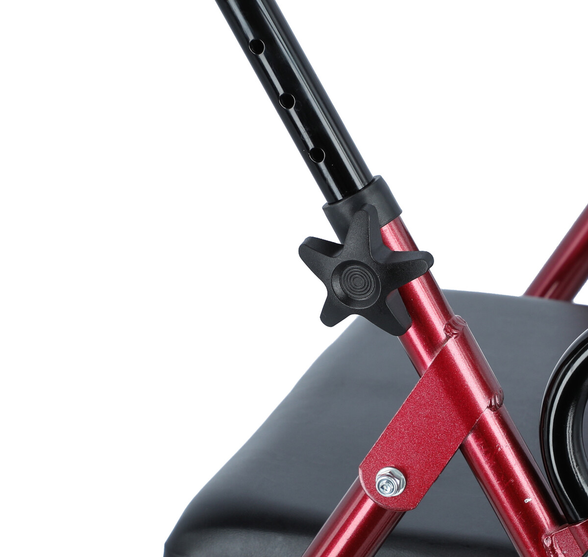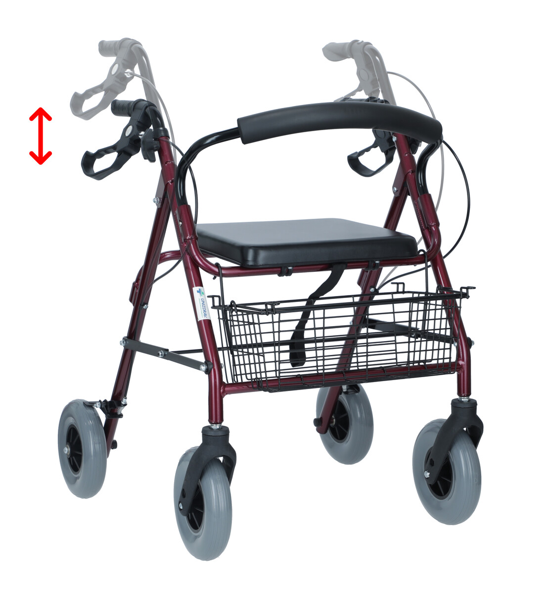 Chodítko je vybavené ergonomickými rukoväťami s nastaviteľnou výškou a brzdami, ktoré poskytujú pohodlný úchop a umožňujú jednoduché prispôsobenie individuálnym potrebám pacienta. Výhodou je tiež sedadlo na prípadný krátky odpočinok a praktický košík na uloženie osobných vecí či drobných nákupov. Nechýba ani parkovacia brzda, ktorá štvorkolku bezpečne zaistí na mieste.