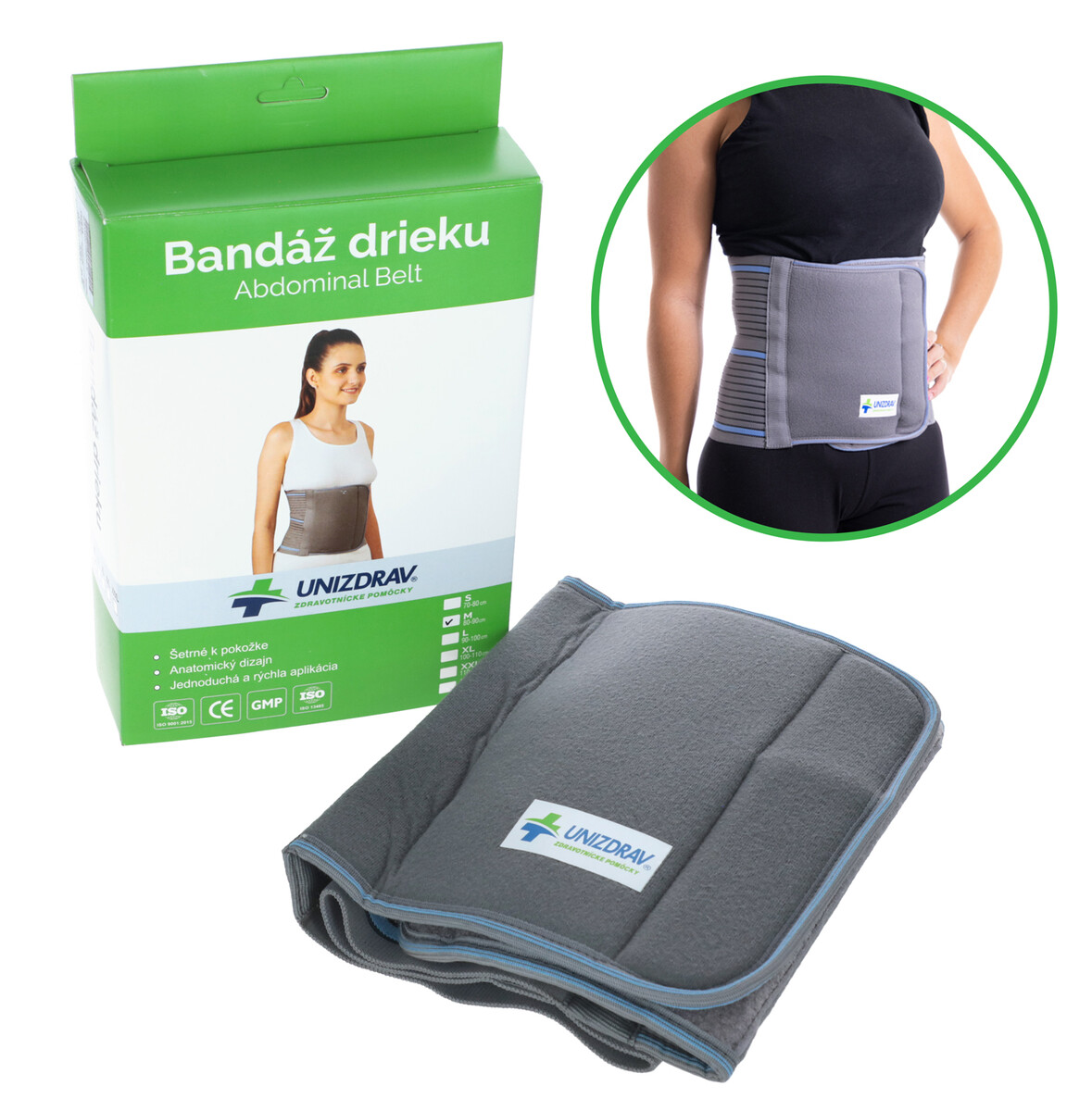 Bandáž drieku a brušného svalstva UNIZDRAV je navrhnutá na podporu brušného svalstva po operačných stavoch, pri ventrálnej prietrži či na spevnenie bruška po tehotenstve.