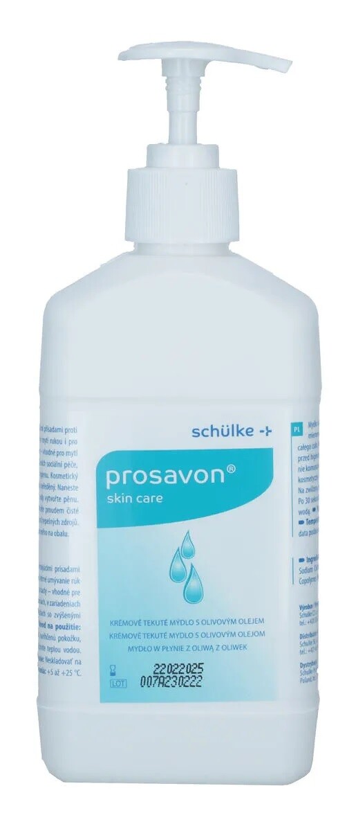 Jemné krémové mydlo PROSAVON s olivovým olejom a ďalšími ošetrujúcimi prísadami je ideálne na časté a zároveň šetrné umývanie rúk a celého tela.