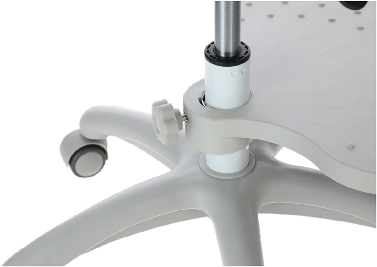 Plastová hviezdicová základňa je zakončená piatimi polyuretánovými kolieskami, ktoré sú tiché a šetrné k tvrdším aj mäkším povrchom. Kolieska sú vybavené automatickými brzdami, ktoré sa aktivujú pri zaťažení stoličky. Tento mechanizmus je obzvlášť užitočný pre deti, ktoré sa na stoličke často vrtia, čím strácajú pozornosť pri činnostiach, kde je dôležitá pevná poloha, ako je napríklad písanie alebo kreslenie.