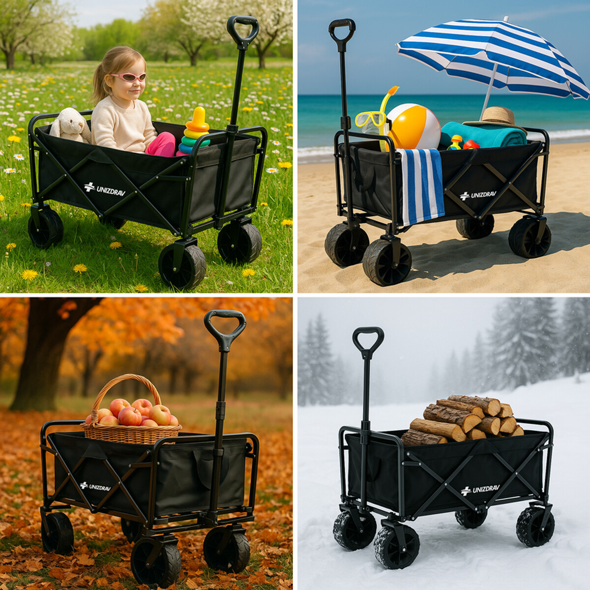 Stabilná skladacia konštrukcia z neho robí skvelého pomocníka na bezpečnú prepravu bez námahy. Ručný prepravný vozík využijete pri širokej škále činností, ako sú nákupy, cestovanie, záhradkárčenie, ale aj ako plážový vozík či kempingový vozík na výletoch alebo festivaloch.
