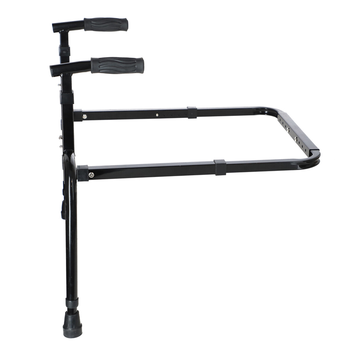 Bezpečnosť pri používaní zaistia protišmykové ergonomické rukoväte s TPR povrchom a gumové nadstavce na nožičkách, vďaka ktorým madlo ostáva na mieste aj po plnom prenesení váhy na rám.