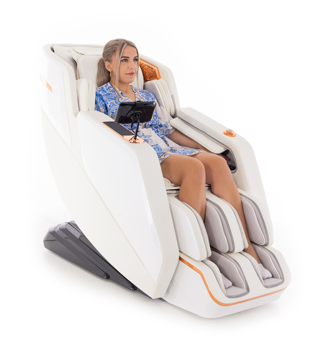 Prémiové masážne kreslo v nápaditom dizajne vybavené najnovšími smart technológiami vrátane funkcie uvoľňovania negatívnych iónov. Inštalácia v cene.