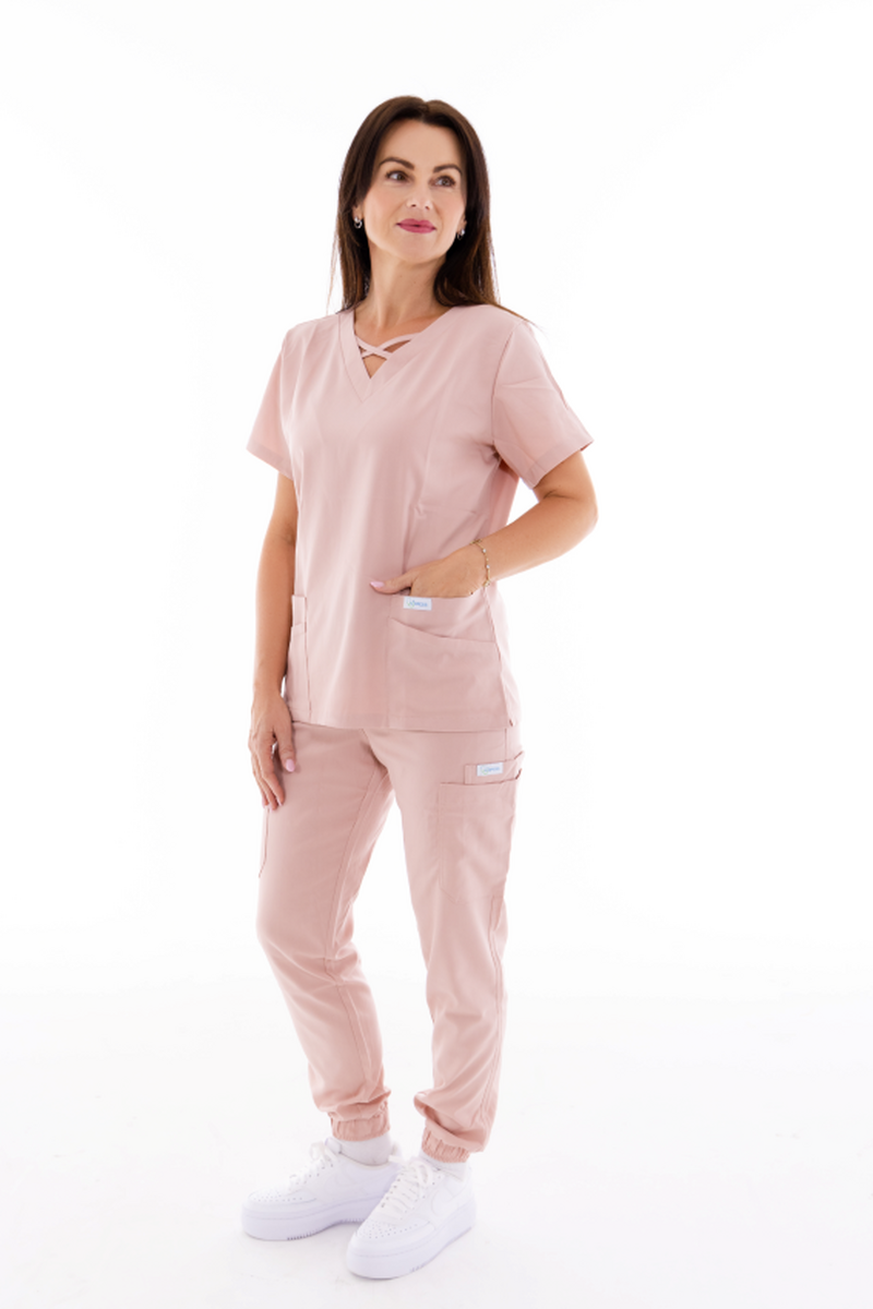Dámska zdravotnícka blúzka Unidress Comfort v púdrovej farbe bola navrhnutá s ohľadom na funkčnosť a nadčasovosť. Je ideálnou voľbou pre pracovníčky všetkých zdravotníckych profesií vrátane lekárok, sestričiek, fyzioterapeutiek, opatrovateliek, medičiek či laborantiek.