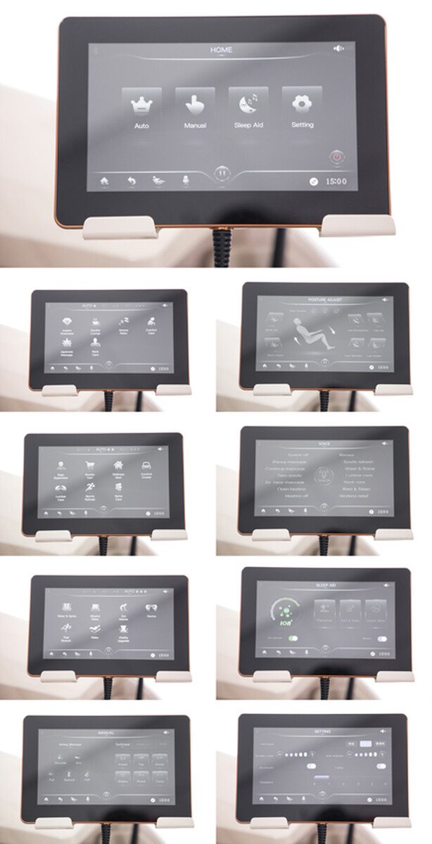 Osobitne je možné zvoliť si čas trvania masáže (v rozpätí od 5 do 30 min), vyhrievanie, šírku, rýchlosť a prítlak 4D masážnej hlavice, ako aj intenzitu vzduchových vankúšikov.