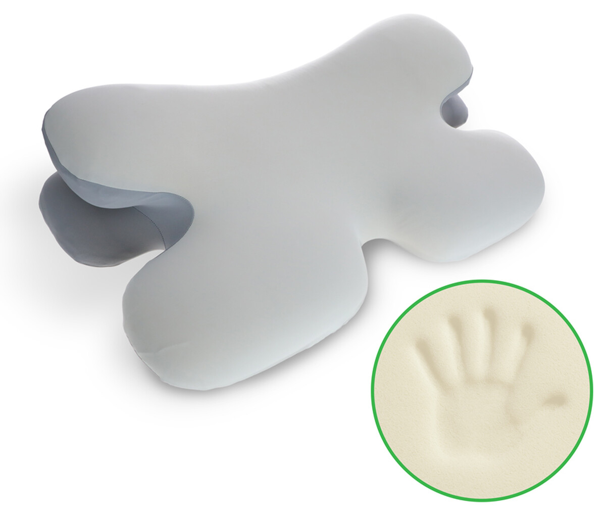 Anatomický vankúš je vhodný pre spánok na chrbte, boku aj bruchu. Jeho štruktúra prirodzene kopíruje krivky hlavy, krku a ramien, čím zabezpečuje správne zarovnanie chrbtice a uvoľnenie svalov. Výrezy po stranách vytvárajú pohodlný priestor pre ruky, čo prispieva k ešte väčšiemu komfortu počas spánku.