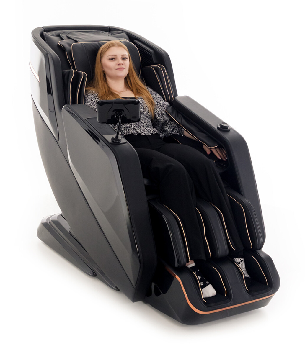 Prémiové masážne kreslo v nápaditom dizajne vybavené najnovšími smart technológiami vrátane funkcie uvoľňovania negatívnych iónov. Inštalácia v cene.
