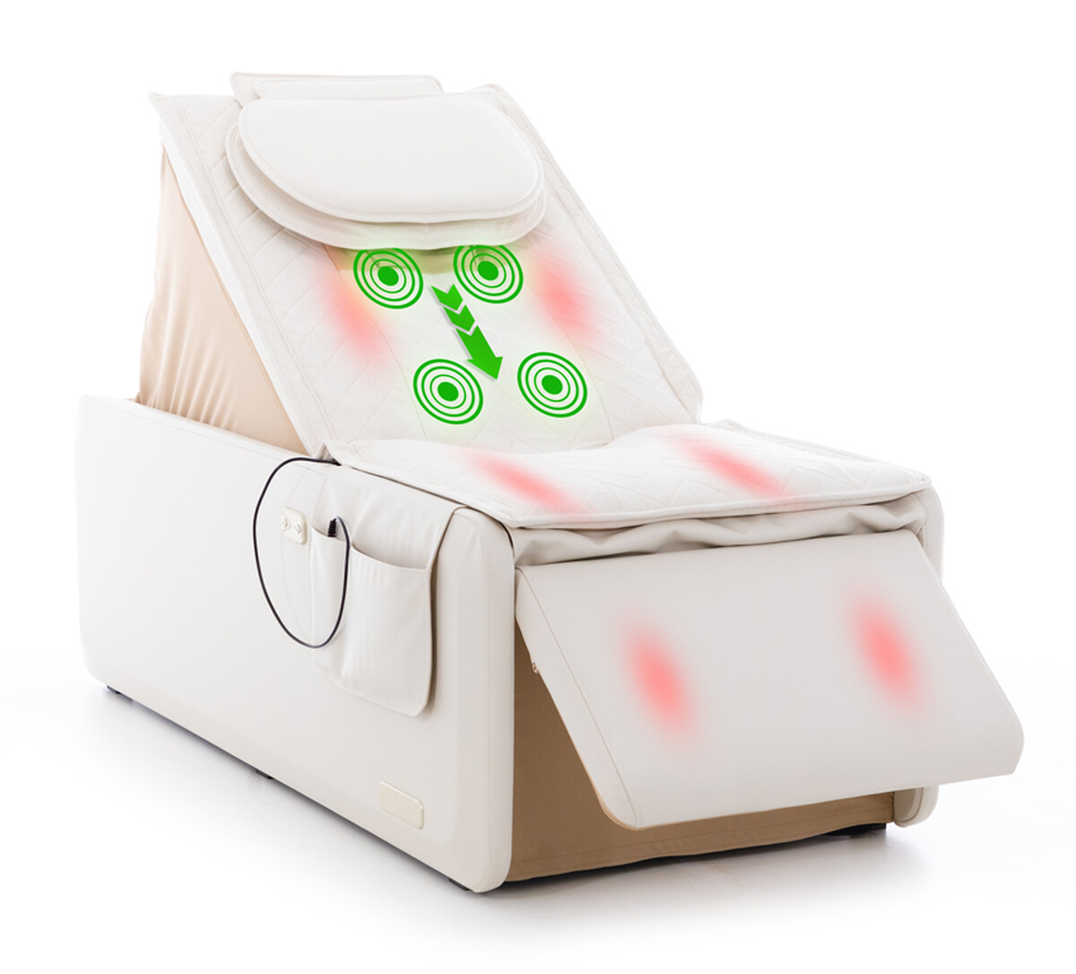 Relaxačné kreslo je vybavené 3D airbagovou technológiou a unikátnou masážnou hlavicou so 4 kontaktnými bodmi, ktoré spoločne zabezpečujú masáž s mimoriadne realistickým efektom, verne napodobňujúcim dotyky profesionálneho maséra.