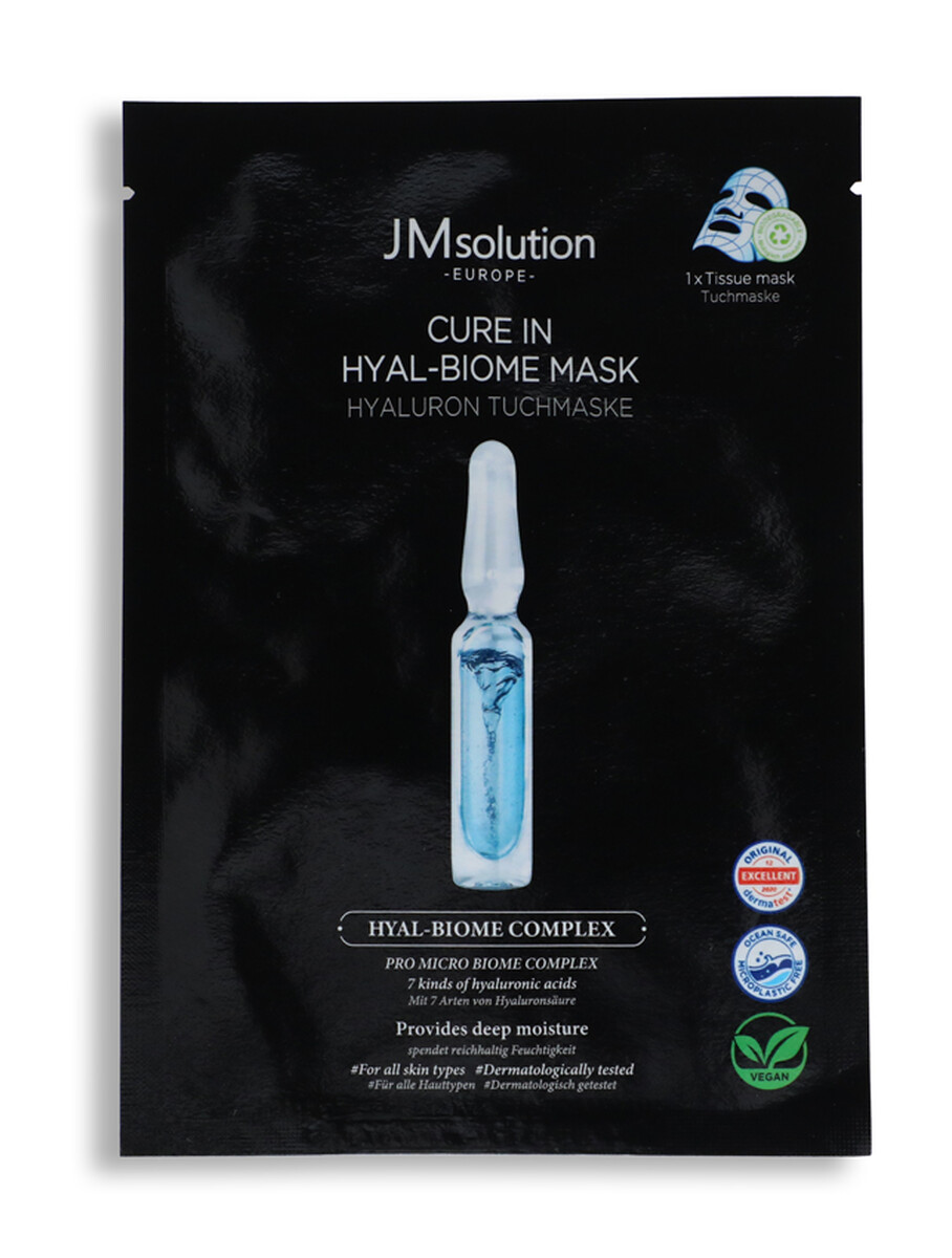 Hyalurónová maska CURE IN HYAL-BIOME využíva unikátny komplex 7 typov kyseliny hyalurónovej v kombinácii s probiotikami, ktoré pokožku intenzívne zvlhčujú, vyživujú a prispievajú k zachovaniu jej prirodzeného mikroprostredia. Spolu s ďalšími zložkami, akými je napríklad skvalán, trehalóza, morská či ružová voda, je podporená rovnováha a regeneračné schopnosti pokožky.