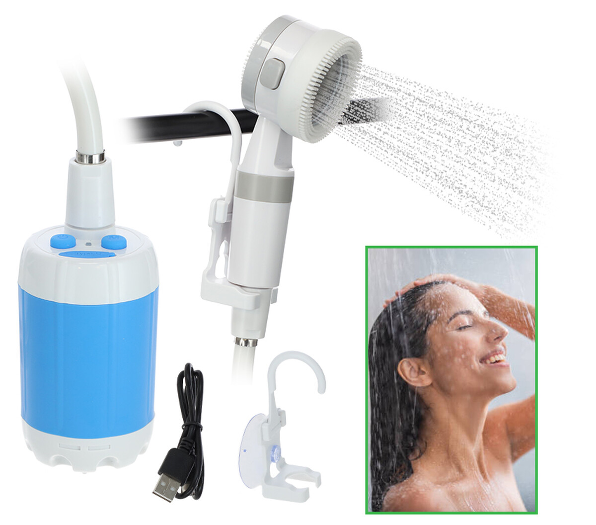 Prenosná sprcha s nabíjateľnou batériou je univerzálnym riešením na zaistenie rýchlej a pohodlnej hygieny kdekoľvek. Vďaka kompaktnému dizajnu, výkonnému čerpadlu s filtrom, dlhej výdrži batérie a jednoduchej obsluhe je ideálna na cestovanie aj domáce použitie.