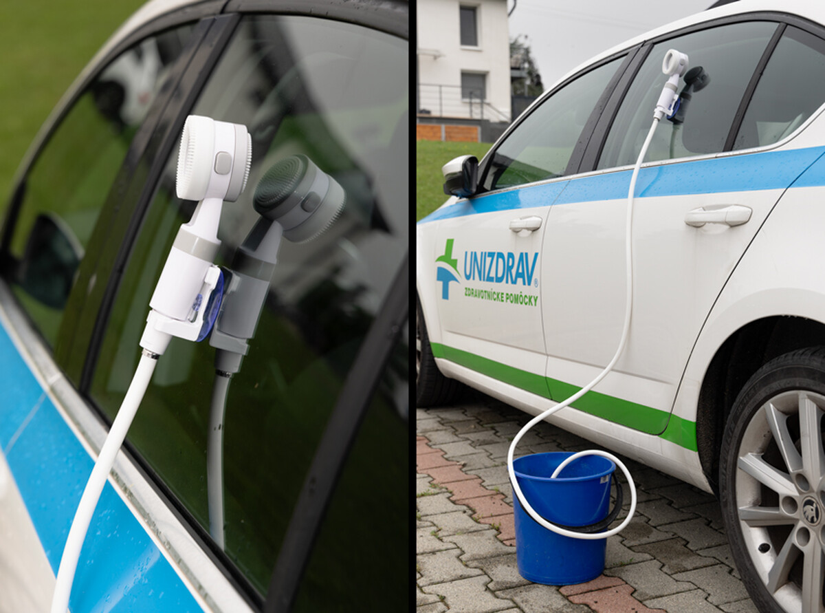 Pomôcka nájde uplatnenie ako kempingová sprcha na výletoch, na chate či v záhrade, napríklad pri umývaní domácich zvierat, auta alebo záhradného náradia. Veľkým prínosom bude aj v zdravotníckej starostlivosti, najmä pri hygiene imobilných pacientov, pre ktorých je klasické sprchovanie často problematické. Flexibilná hadica a intuitívne ovládanie umožňujú šetrné umývanie priamo na lôžku, bez nutnosti presunu. To zvyšuje komfort pacienta a zároveň výrazne uľahčuje prácu ošetrovateľom.