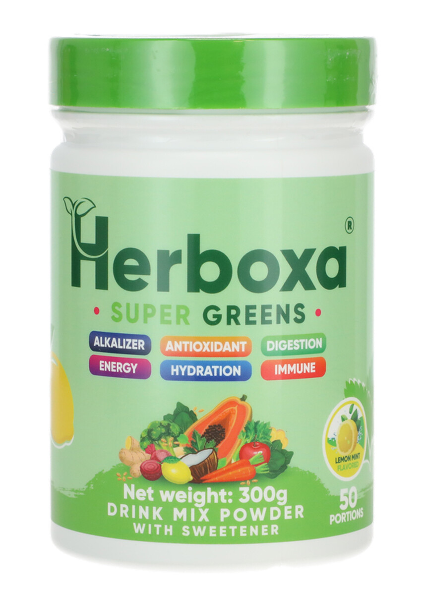 Získajte každodennú dávku vitality z prírody s výživovým doplnkom Herboxa SUPER GREENS. Táto výnimočná nápojová zmes obsahuje viac ako 30 druhov zelených superpotravín, vitamínov, minerálov a enzýmov, ktoré podporia vaše zdravie. Telo detoxikuje a poskytuje mu prirodzenú energiu bez kofeínu. Posilňuje imunitu a trávenie, zlepšuje hydratáciu organizmu, zásobuje ho silnými antioxidantmi a prispieva k udržaniu acidobázickej rovnováhy (alkalizuje telo).