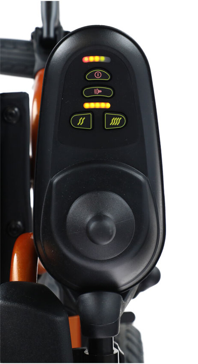 Obsluha elektrického invalidného vozíka je jednoduchá a intuitívna. Vstavaný ovládací modul – joystick so svetelným indikátorom zvoleného režimu a stavu batérie zaisťuje plynulé ovládanie dopredu, dozadu aj do strán. Na výber je 5 úrovní rýchlostí, pomocou ktorých si používateľ môže prispôsobiť jazdu svojmu zdravotnému stavu a aktuálnym podmienkam v teréne. Joystick je navyše možné umiestniť na pravú aj ľavú stranu. V prípade potreby je tiež možné zvoliť manuálny režim pre sprievodnú osobu.