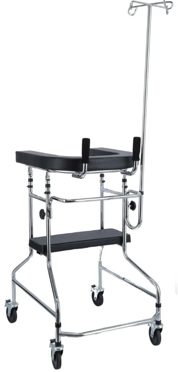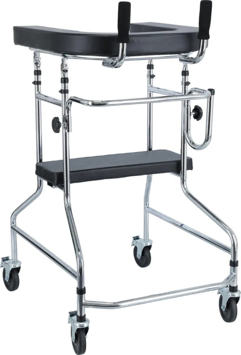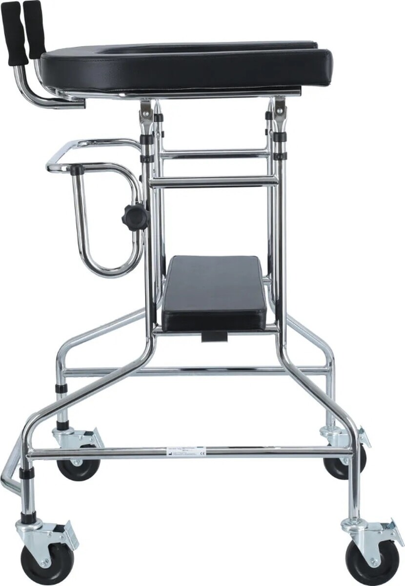 Tento model mobilného chodítka je vybavený čalúnenými predlakťovými opierkami s plynulým nastavením výšky, ktoré zaručujú pohodlné a ergonomické používanie. Praktickým doplnkom je držiak na infúzny stojan a tiež odnímateľné sedadlo, ktoré poslúži na krátky odpočinok. O jednoduché manévrovanie s chodúľkou a bezpečné zastavenie na mieste sa postarajú otočné kolieska s brzdami.