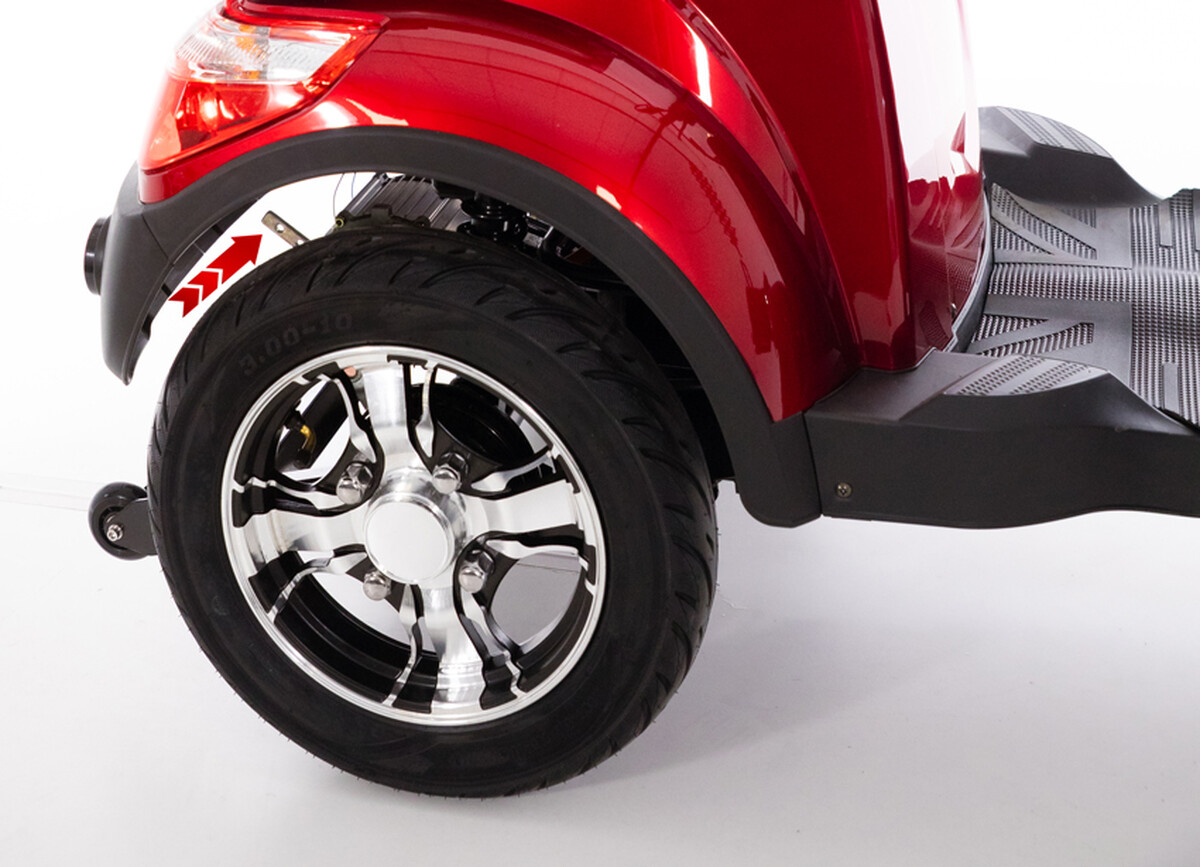 Na elektrický skúter ZTECH ZT-19L sa budete môcť spoľahnúť v každej situácii. Robustná štvorkolesová konštrukcia v kombinácii s prednými a zadnými tlmičmi zabezpečí výbornú stabilitu aj na nerovnom povrchu. Vozidlu nechýba ani automobilový diferenciál zadnej nápravy či kolieska proti prevráteniu.