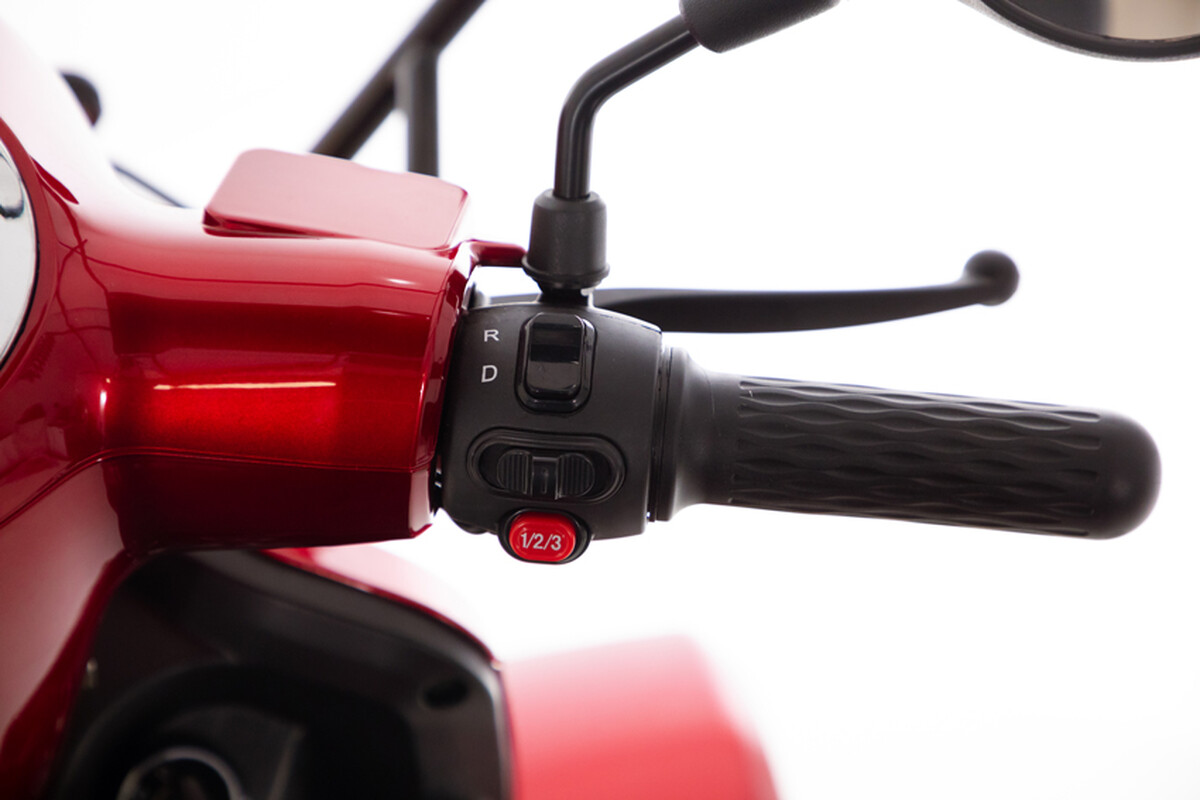 Na výber sú tri rýchlostné režimy, ktoré prispôsobia jazdu aktuálnym potrebám: nízka na rozbeh, stredná na bežné presuny, vyššia pre svižnejší pohyb. Užitočnými funkciami je tiež hlasové upozornenie pri cúvaní, parkovacia brzda či automatické vypnutie pohonu pri brzdení.