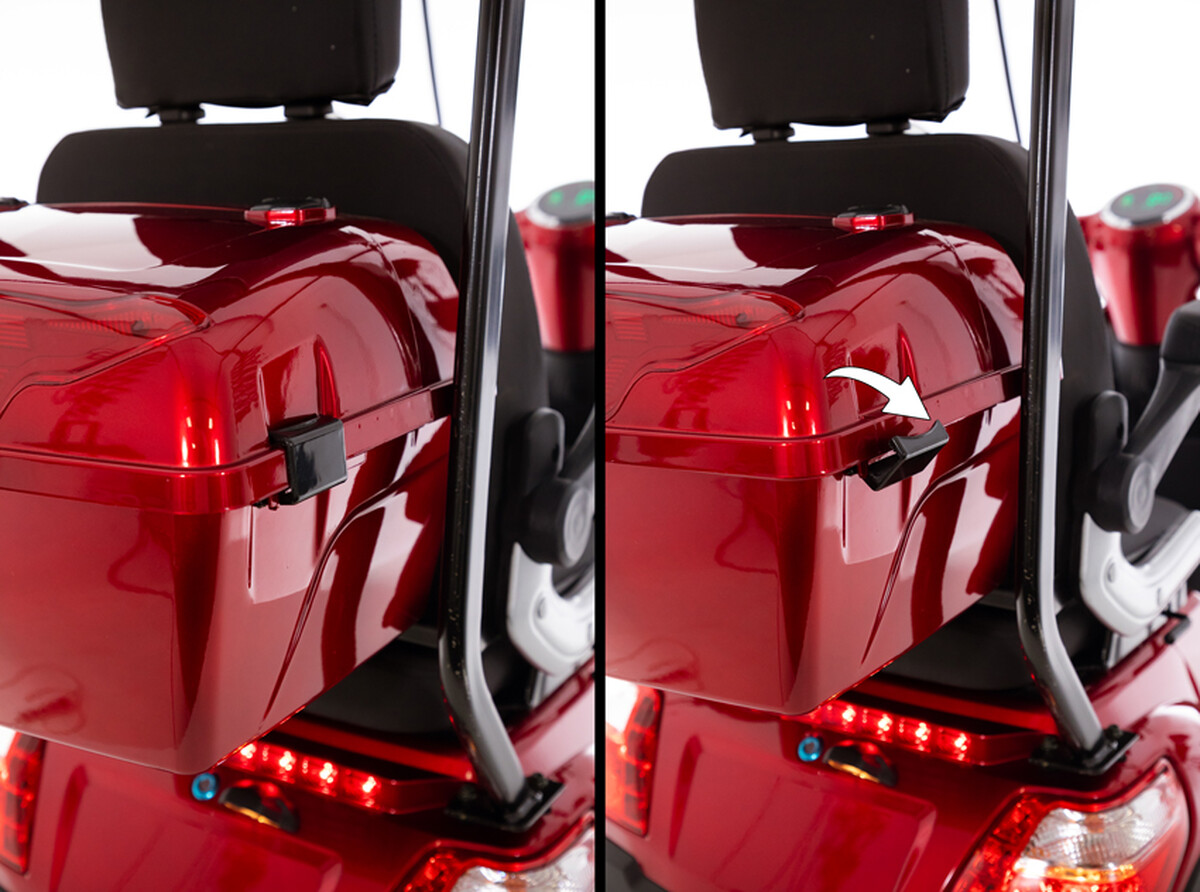 Praktickým doplnkom je úložný box, ktorý sa nachádza hneď za sedadlom. Box je uzamykateľný a bez problémov sa do neho zmestí menší nákup. Okrem toho je k dispozícii úložný priestor pod sedadlom a takisto pod riadidlami.