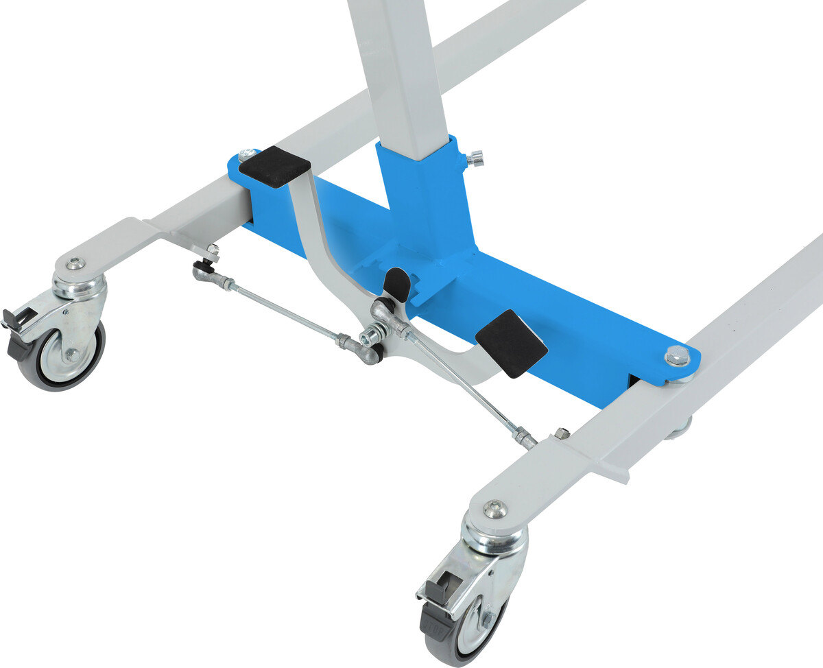 Zdvihák je vyrobený z odolnej lakovanej ocele, rukoväť je z polyuretánu. Podstavec má štvorcový tvar, má štyri otočné kolieska s priemerom 10 cm, pričom dve z nich majú brzdy. Základňa zdviháka je nastaviteľná a zaisťuje stabilitu a ľahké presúvanie aj v oblasti s obmedzeným priestorom.