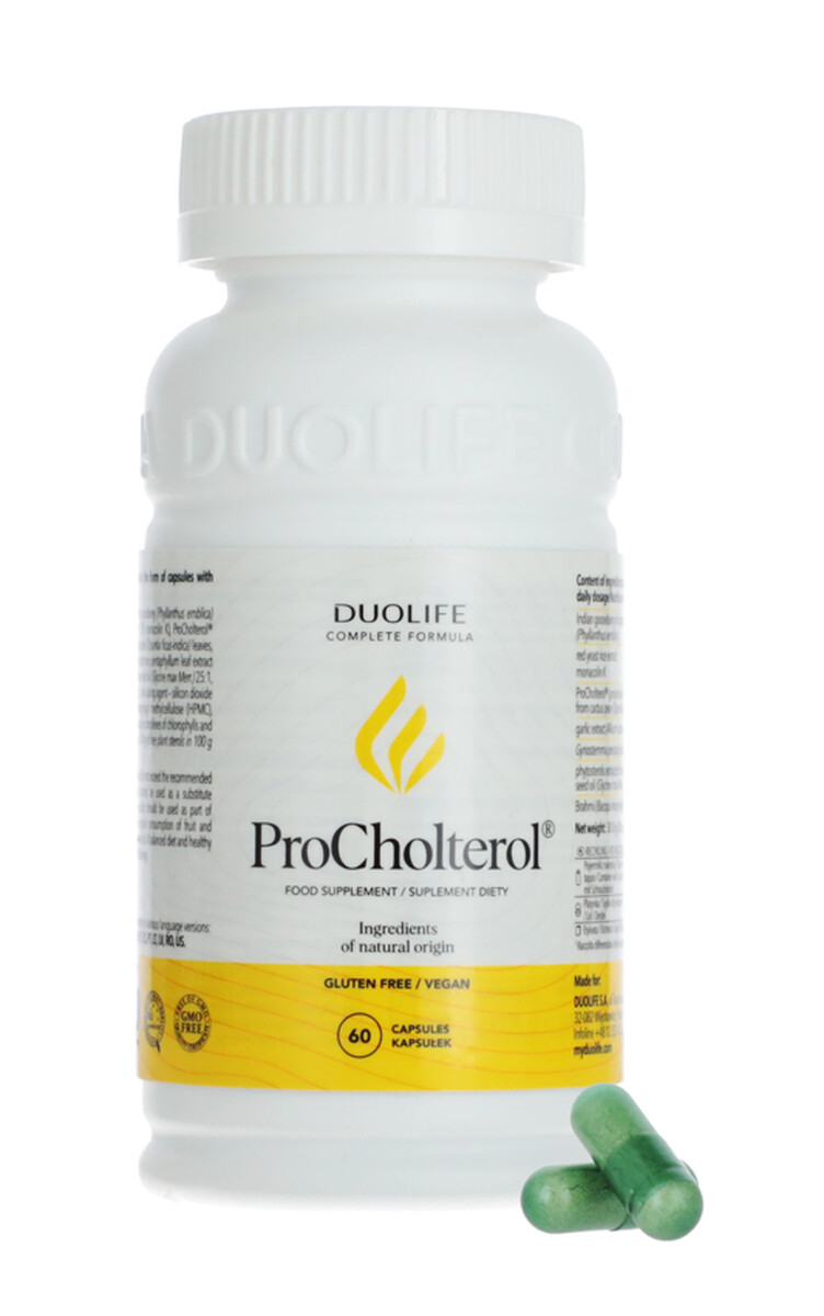 DUOLIFE ProCholterol je prírodný výživový doplnok navrhnutý na podporu udržiavania zdravej hladiny cholesterolu a lipidov v krvi. Jeho starostlivo vybrané zložky napomáhajú správnej funkcii obehovej sústavy, podporujú pečeň a prispievajú k celkovej vitalite organizmu.